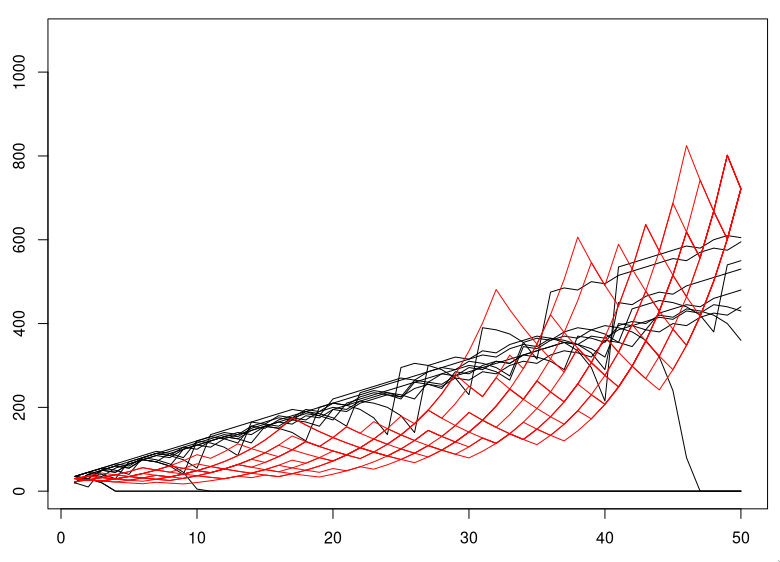 The way they compare strategies (i.e. which is more likely to "be ahead" after N rounds) is more interesting, but it feels like they flipped the script on me :)